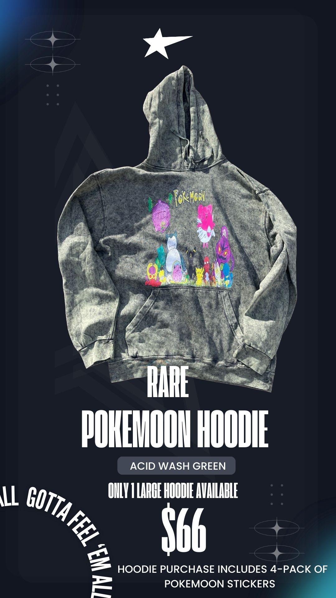 Be the first to review “Pokémoon Hoodie Acid wash Green size Large”